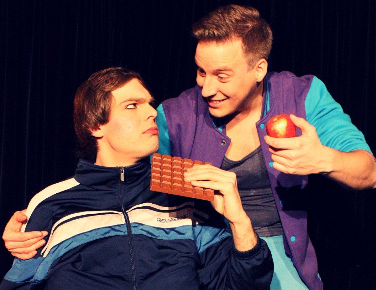 Zum Stück Adi, dick und faul, zieht sich ganz zurück in seine Welt mit Playstation, Fernsehen und Essen. Sein Essen genießt…